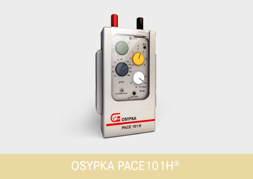 OSYPKA PACE 101H® ist ein externer Einkammer-Herzschrittmacher für die temporäre Stimulation des Herzens bei HR Störungen oder Signalweiterleitungsstörungen, auch geeignet für Rapid Pacing. Die kompakte Form sowie die übersichtliche Bedienoberfläche und die Langlebigkeit des Produktes eignen sich für alle Stimulationsbedürfnisse bei denen ein Einkammerherzschrittmacher gefragt ist.
