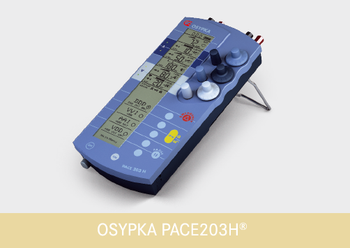 Externe Herzschrittmacher von OSYPKA – seit über 35 Jahren bekannt und erfolgreich im Markt mit anwenderfreudlichen und zuverlässigen Geräten – geeignet für alle Anforderungen: Der übersichtliche OSYPKA PACE 101H® für die Einkammerstimulation, der moderne OSYPKA PACE 203H® mit klarem Anwenderprofil und vielen zusätzlichen Extras, und der einzigartige OSYPKA PACE 300® für die temporäre biventrikuläre Stimulation (CRT)!